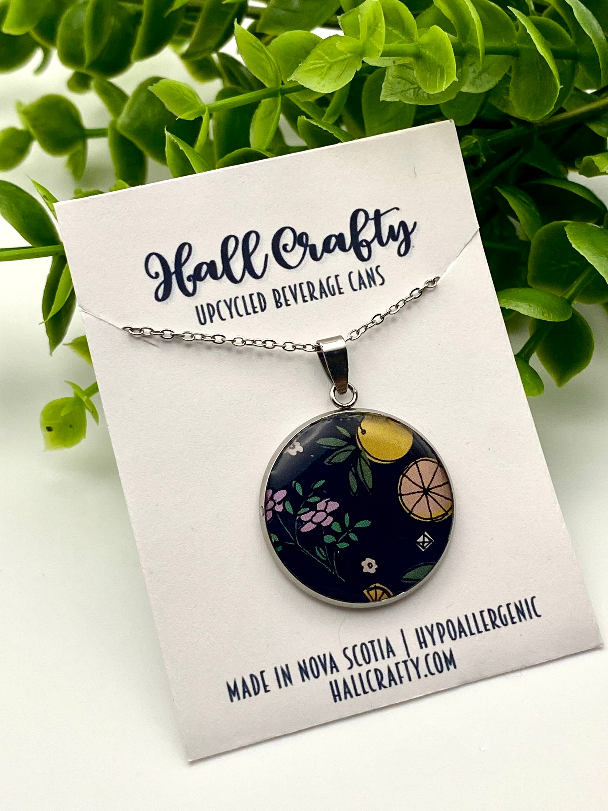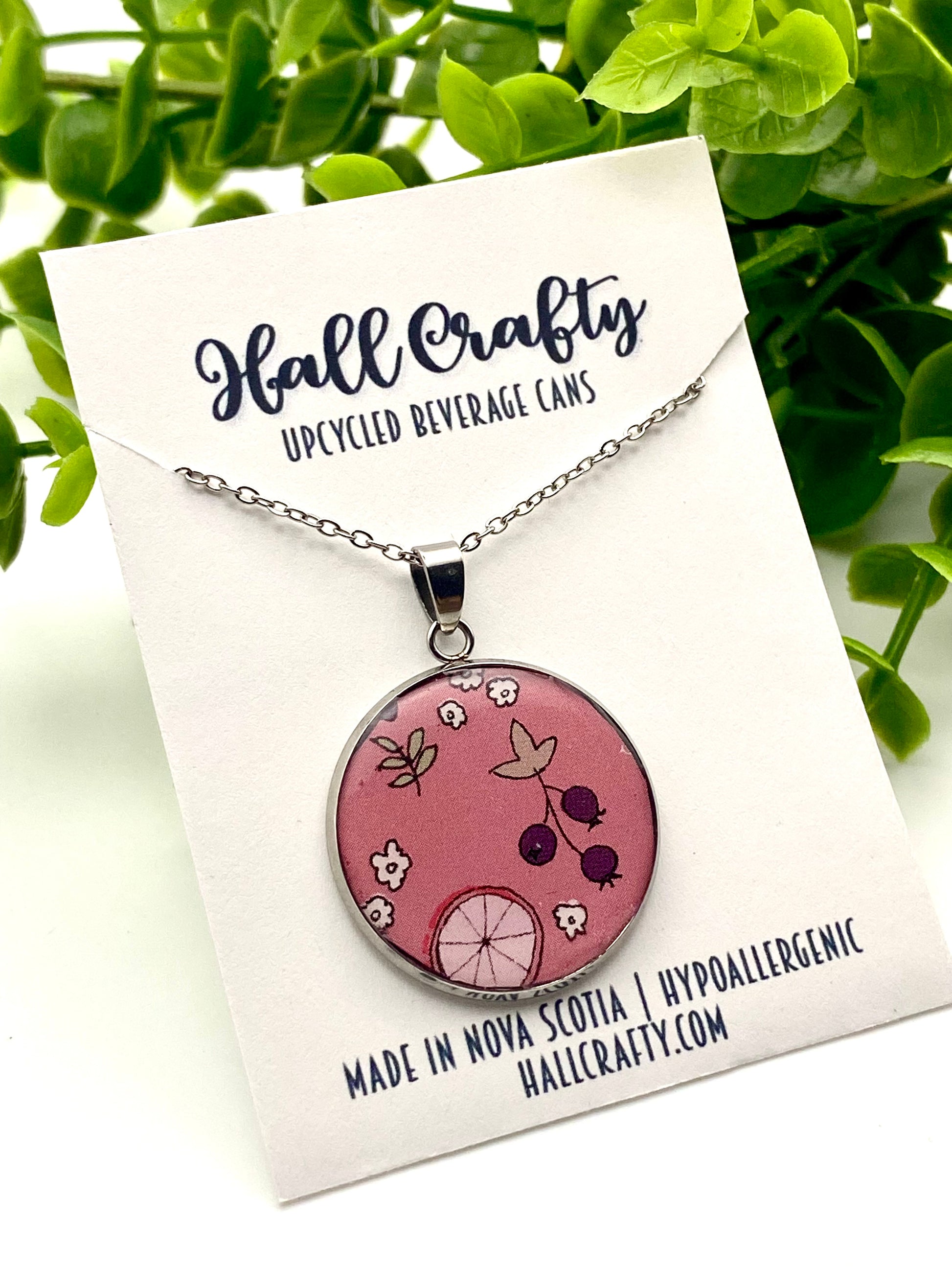 These statement pendant necklaces have been meticulously crafted through the process of upcycling wine and cocktail cans. Styling an outfit with this necklace not only adds a touch of charm but also serves as a conversation starter, proudly highlighting the fact that it is eco-friendly and made from a beverage can.