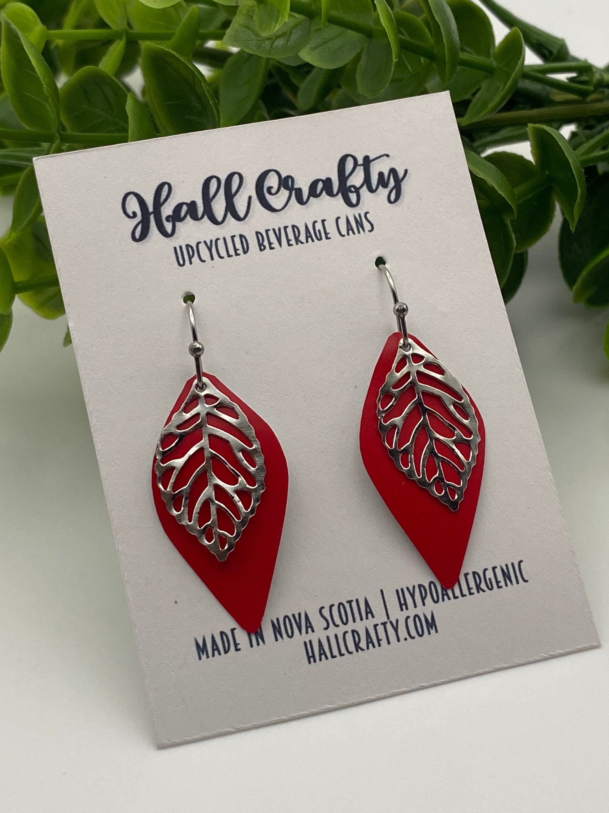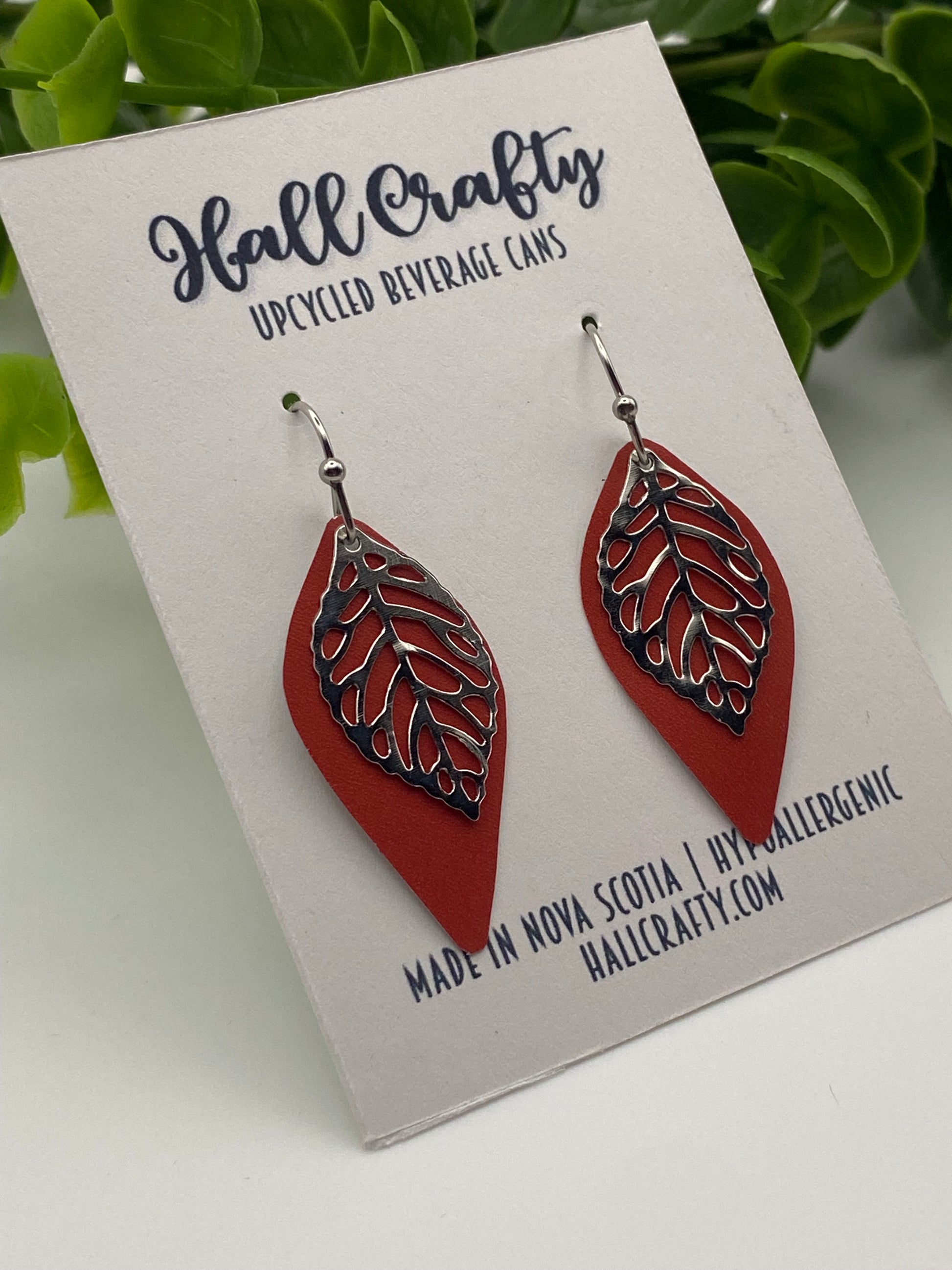 These boho layered leaf charm dangles are a fan favorite. Crafted from recycled beverage cans and aC vented with a stunning stainless steel leaf charm, they effortlessly elevate any outfit for any event. Where sustainability meets style!